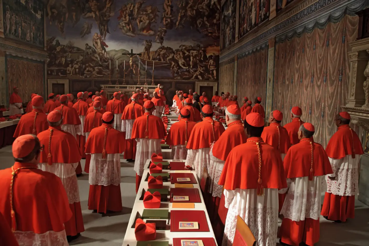 Även om Vatikanstaten gav ett godkännande till att genomföra själva filmen, samtyckte de inte med att filma inne i kapellet. Det innebar att scenografen Paolo Bizzarri behövde ge sig ut på kreativt sökande efter en lösning att återskapa ett av de mest kända handmålade interiörutrymmena i världen, som är skapat med yttersta noggrannhet och det mest skarpa ögat för detaljer. Eftersom fotografering och besök i kapellet är extremt begränsat så var det enda som fanns tillgängligt precisa mätningar inifrån kapellet, och foton tagna av Massimo Siragusa samt Bizzarris egna minne från att stå inne i kapellet.